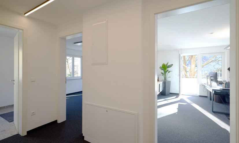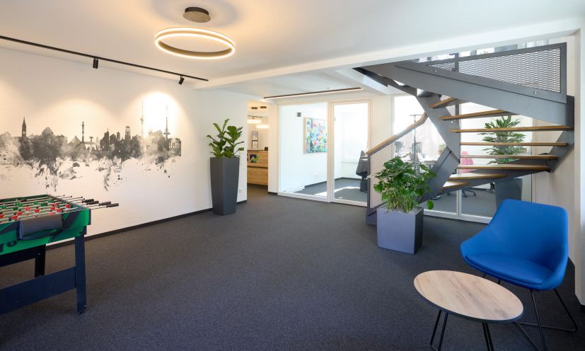Eine großzügige Vierzimmerwohnung mit Wohnküche wurde im Dachgeschoss bereits Ende Mai 2024 fertig gestellt. Diese wurde vom Team der Landesbaugenossenschaft der Finanzbeamten eG während der Umbaumaßnahmen im EG und OG interimsmäßig für den Geschäftsstellenbetrieb genutzt und ist nun als Wohnung vermietet.