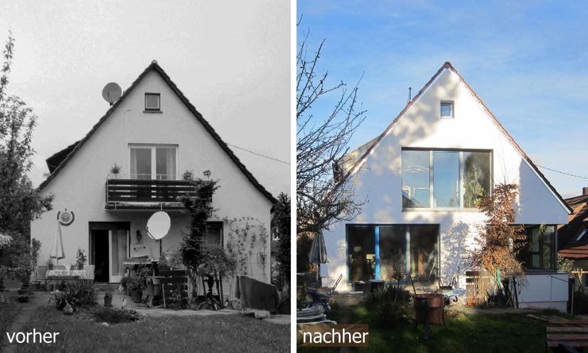Das geerbte Einfamilienhaus aus dem Jahr 1961 wurde auf den Rohbau rückgebaut und für Familie G grundlegend saniert zum KfW‐Effizienzhaus.