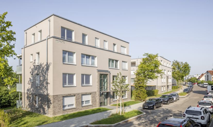 Drei neue Punkthäuser mit insgesamt 27 Wohnungen entstehen auf bisherigen Garagengrundstücken und dienen der Nachverdichtung, ergänzend zur vorhandenen Zeilenbebauung aus der Nachkriegszeit. Gestalterisch einheitlich in der Breite und den Gebäudeabständen zeigen sich die Neubauten entlang der Steinwaldstraße.