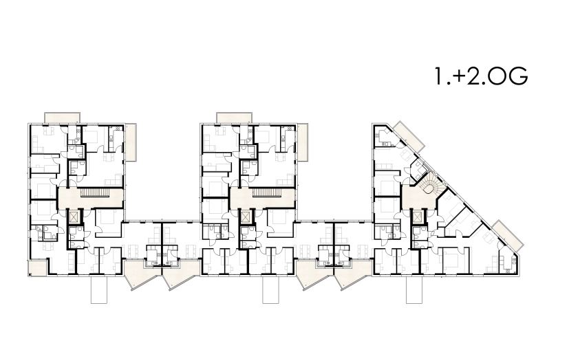 Am Waiblinger Stadteingang werden direkt neben dem Freibad drei straßenseitig erschlossene, dreigeschossige Wohnhäuser auf einem Parkierungssockelbau errichtet und riegeln mit ihren Zwischenbauten den Straßenlärm ab. Unser Konzept sieht in allen Wohngeschossen Drei- bzw. Vierspännergrundrisstypen vor. Die geplanten Wohnungen sind darauf ausgelegt, über eine lange Lebensdauer den Bedürfnissen von verschiedenen Menschen - Singles, Familien, Alleinerziehenden und anderen Formen des Zusammenlebens - gerecht zu werden, und sind aufgrund ihrer kompakten Grundrisse für die künftigen Bewohnenden finanzierbar.