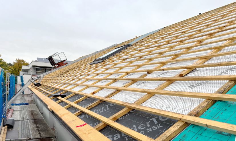 Das Dach erhielt eine Aufsparrendämmung, zudem wurden die Dachvorsprünge vergrößert, um die Fassade zu schützen.