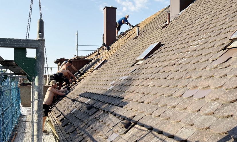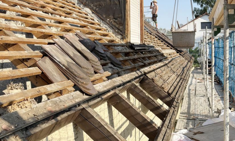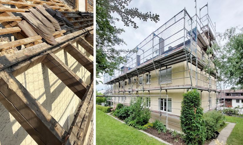Das Dach erhielt eine Aufsparrendämmung, zudem wurden die Dachvorsprünge vergrößert, um die Fassade zu schützen und eine spätere Nachrüstung einer Fassadendämmung zu ermöglichen.
